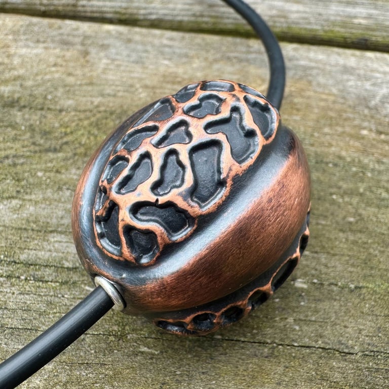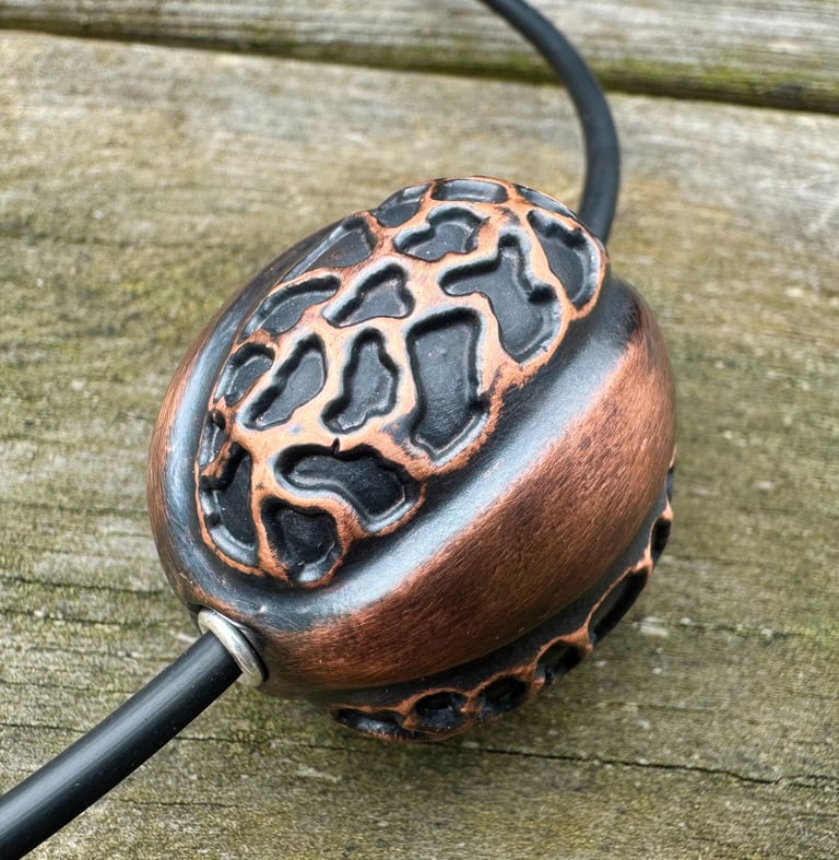 Electroformed copper, sterling silver, rubber